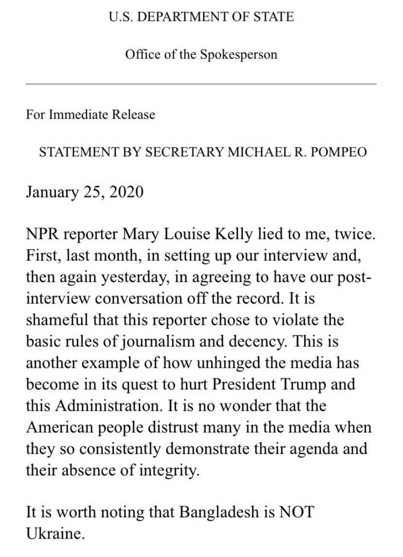 Pompeo Says Npr Host Lied And Mistook Bangladesh For Ukraine But