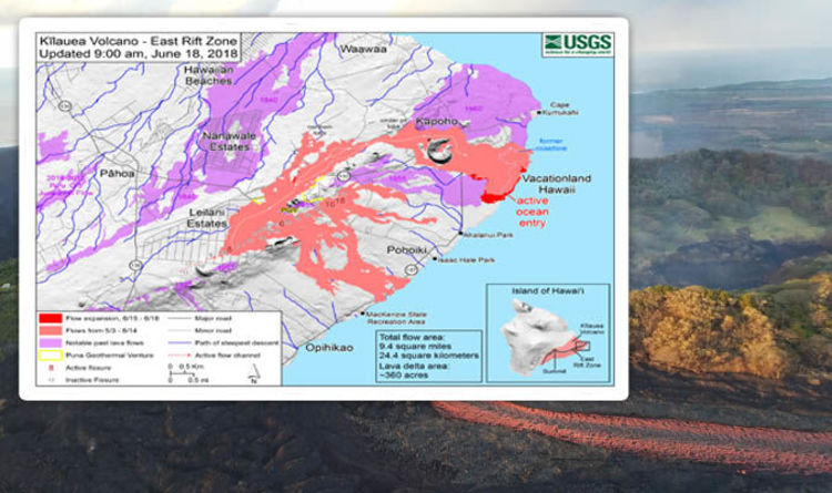 Hawaii Volcano Eruption Map Kilauea Lava Flows Cover 9 4 Square