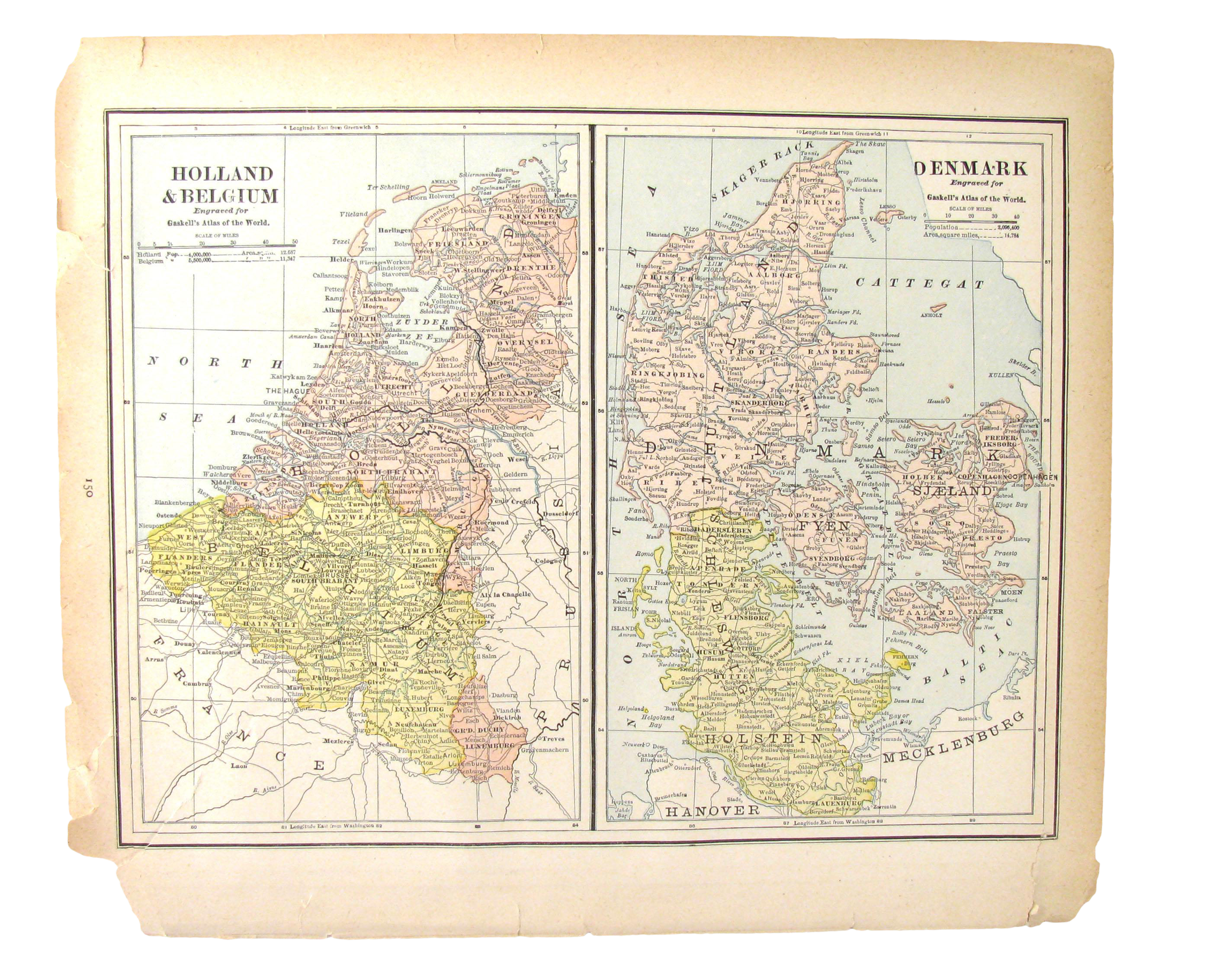 Holland Belgium Map Original 1895 Antique Vintage Map Of Etsy