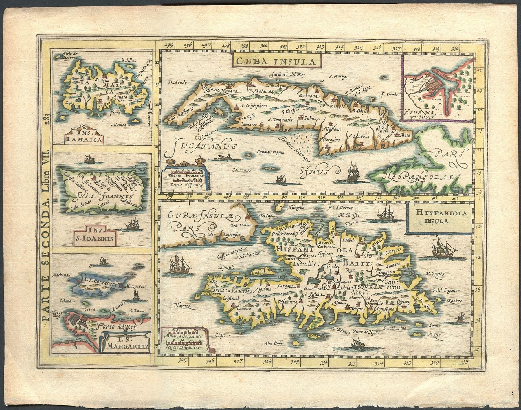 Italian Copperplate Engraved Map Of Cuba Hispaniola Jamaica