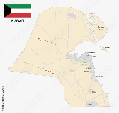 Detailed Vector Road Map Of The State Kuwait With Flag Buy This