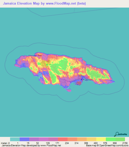 Jamaica Elevation And Elevation Maps Of Cities Topographic Map