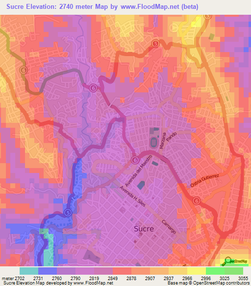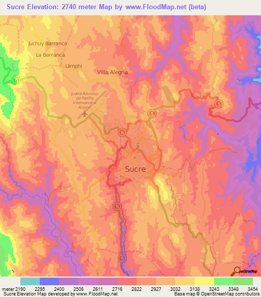 Elevation Of Sucre Bolivia Elevation Map Topography Contour